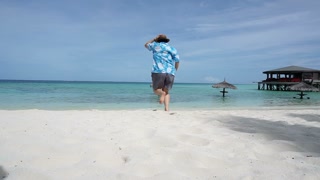 Asian Tourist Running To Beautiful Maldives Clear Sea Enjoying Her Vacation At Luxury Resort Stock Video Footage Storyblocks