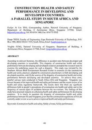 Construction Health And Safety Performance In Developing And Developed Countries A Parallel Study In South Africa And Singapore
