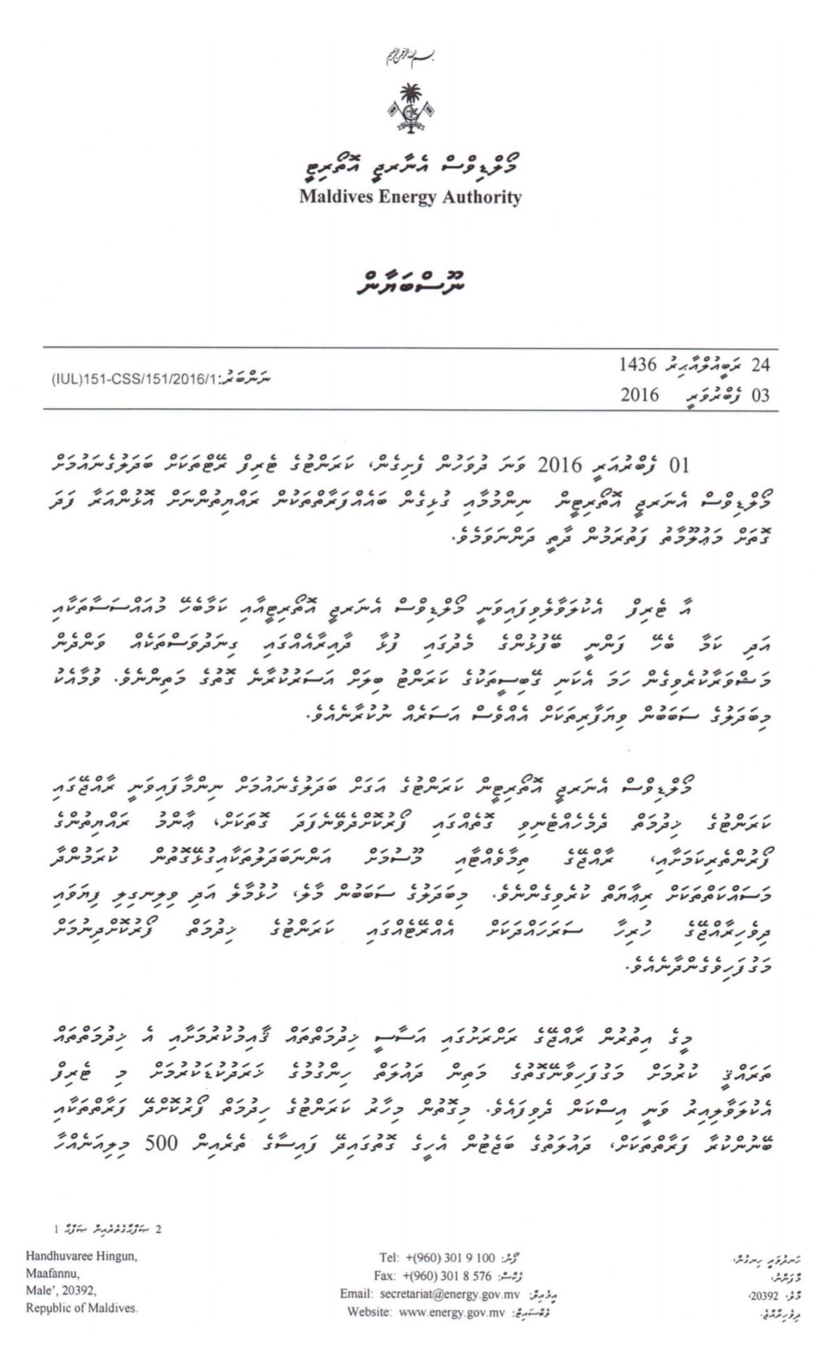 The newly approved tariffs include two tariff structures one for greater male region male hulhumale vilimale and one for all the rest of the inhabited islands. This vision can be achieved with improved sector level planning and good decision making. These regulations made by the maldives energy authority mea on recommendations of the ministry of environment and energy under public utilities law 496 the act and the the presidential decrees under the provisions of the act may be cited as the energy electricity licensing regulations 2012 d shall come into force on the date of their publication in the official an gazette.