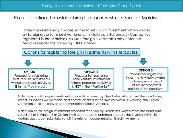 The new policy consolidates existing fdi approval practices and introduces new policy changes. Foreign investment means the goods money and services brought into the republic of maldives by foreign governments bodies or nationals as are referred to in section 1 and 4 hereof to undertake an economic activity in the republic of maldives exclusive of those imported by them under law no.