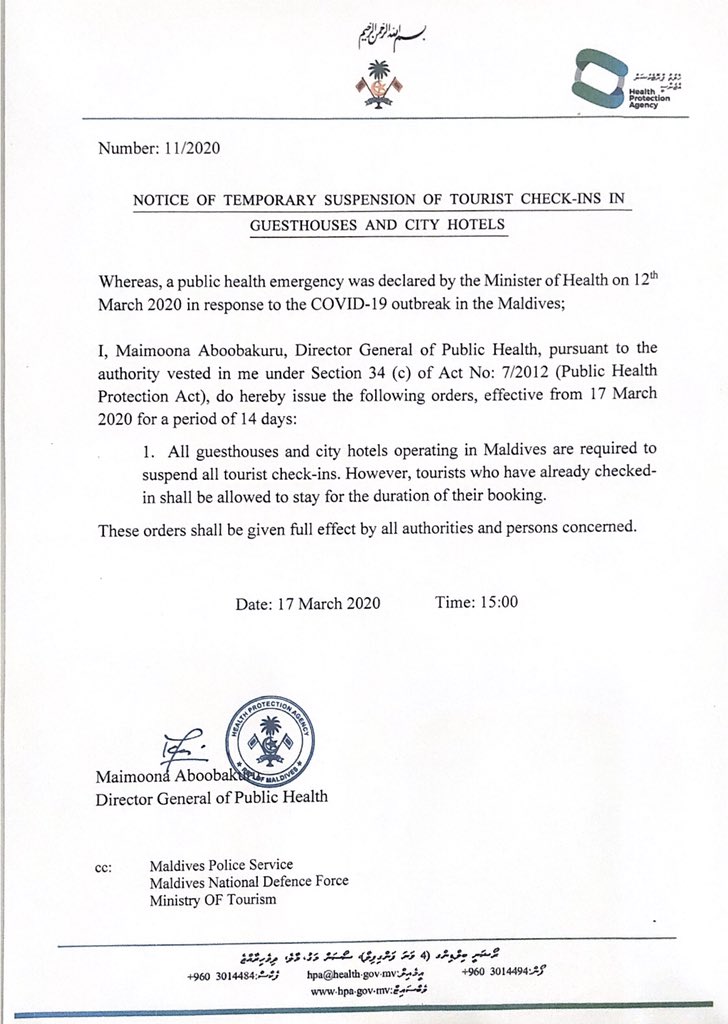 Health Protection Agency On Twitter Notice To Quarantine All Passengers Travelling To Maldives By Air Except For Tourists Checking In To Resorts