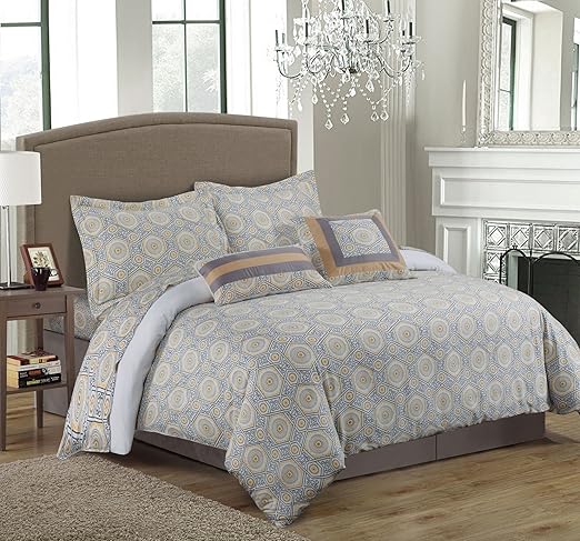 Amazon Com Tribeca Living Maldives 5 Piece Egyptian Cotton Medallion Printed Duvet Cover Set King Grey Yellow Home Kitchen