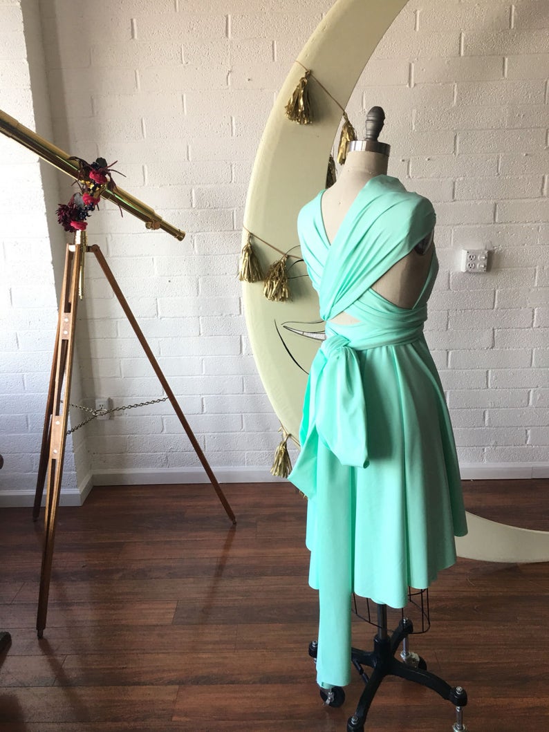 Maldives Mint Infinity Convertible Wrap Short Dress With Full Circle Skirt Bridesmaids Plus Size Maternity