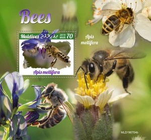 Details About Maldives 2019 Bees On Stamps 4 Stamp Sheet Mld190106a Bee Stamp Maldives