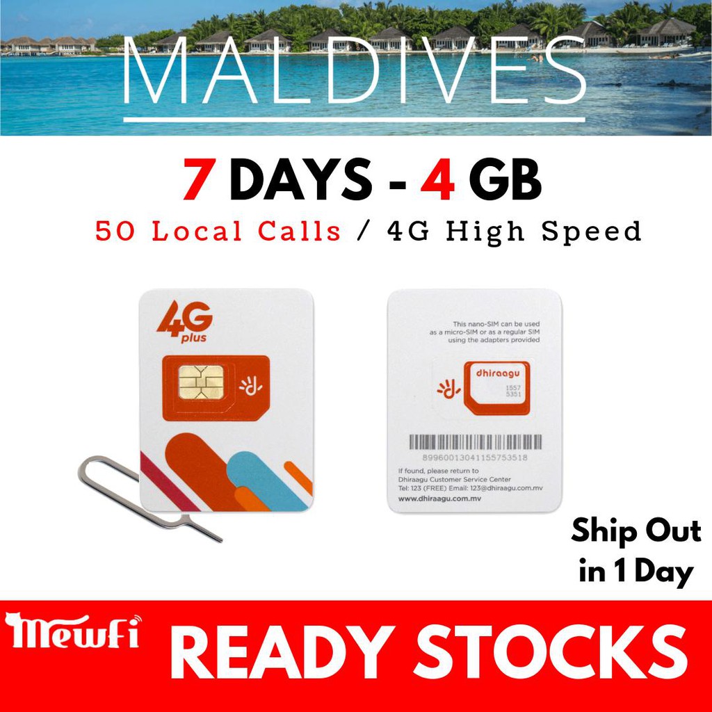 Mewfi Dhiraagu Maldives Travel Sim Card 7 14 Days 4gb 17gb 4g Data Global Local Call Sim Center