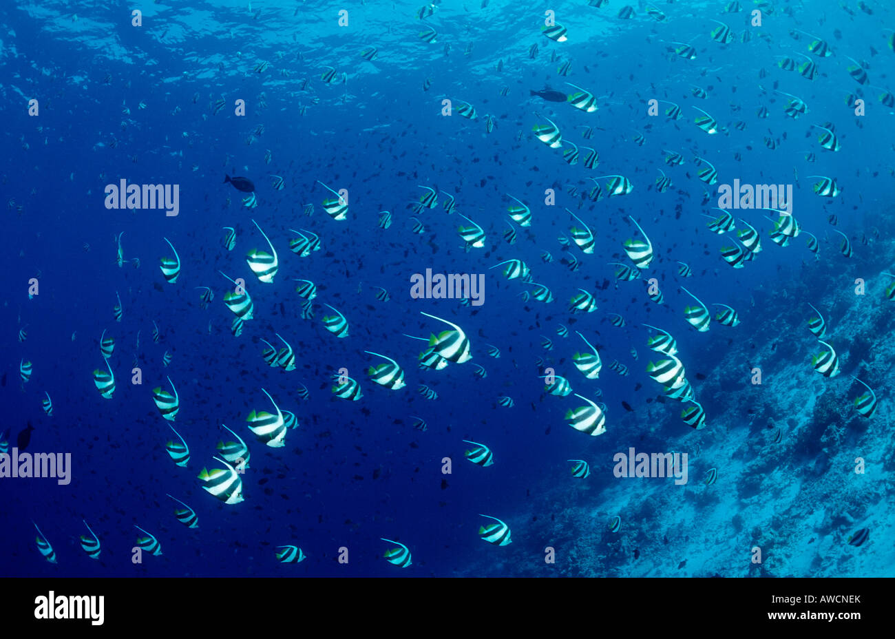 Schooling Pennant Bannerfishes Heniochus Diphreutes Maldives Indian Stock Photo 16540218 Alamy