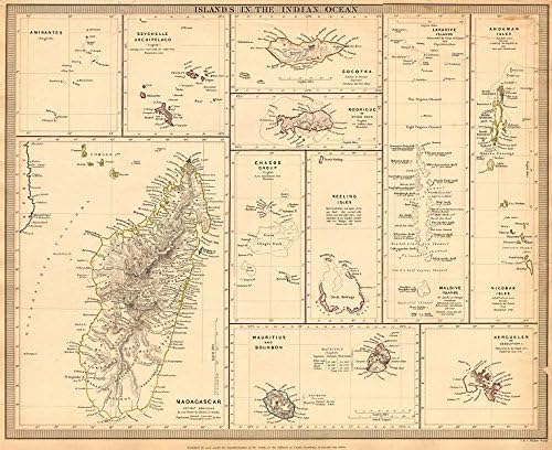Indian Ocean Madagascar Seychelles Maldives Mauritius Reunion Sduk 1874 Map
