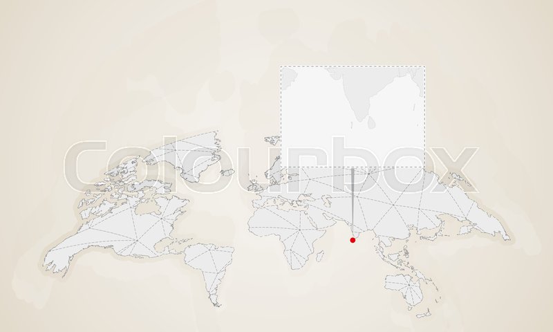 Map Of Maldives With Neighbor Countries Pinned On World Map Abstract Triangles World Map