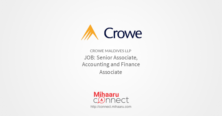 Senior Associate Accounting And Finance Associate Crowe Maldives Llp Mihaaru Connect