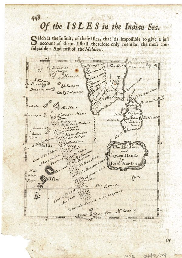 Maldives Male Atolls Ceylon Sri Lanka Kanyakumari Mallet 1683 Old Map