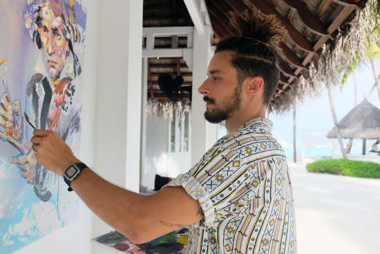Maldivian Artist Painting Beautiful Landscape Of Tropical Island Stock Photo Image Of Building Cooking 128836754
