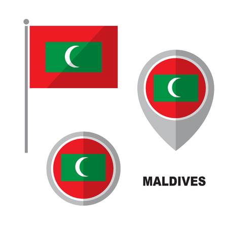 Maldives Flag And Map Pointer Isolated On White Background Republic Of Maldives National Symbol Vector Flat Design Collection Royalty Free Vector Graphics