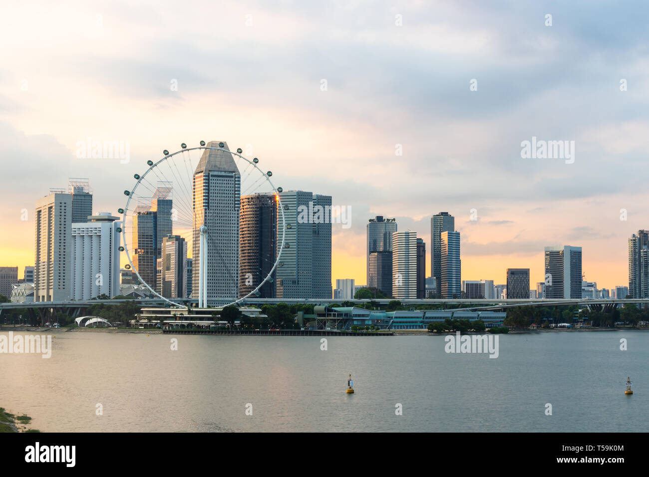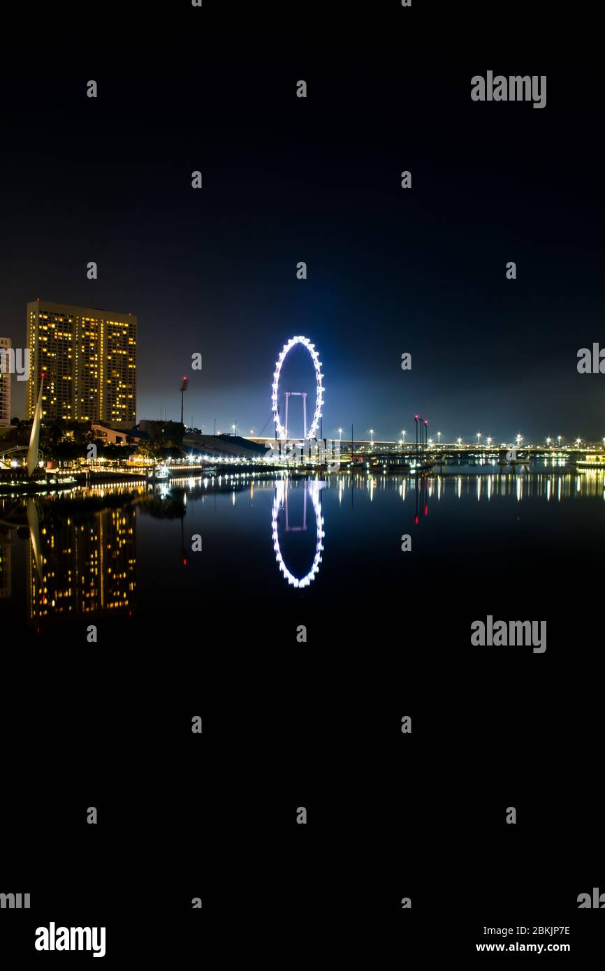 Singapore Flyer Cityscape On Marina Bay And Sunset In Twilight Time Taken Photo From Marina Barrage Stock Photo Alamy