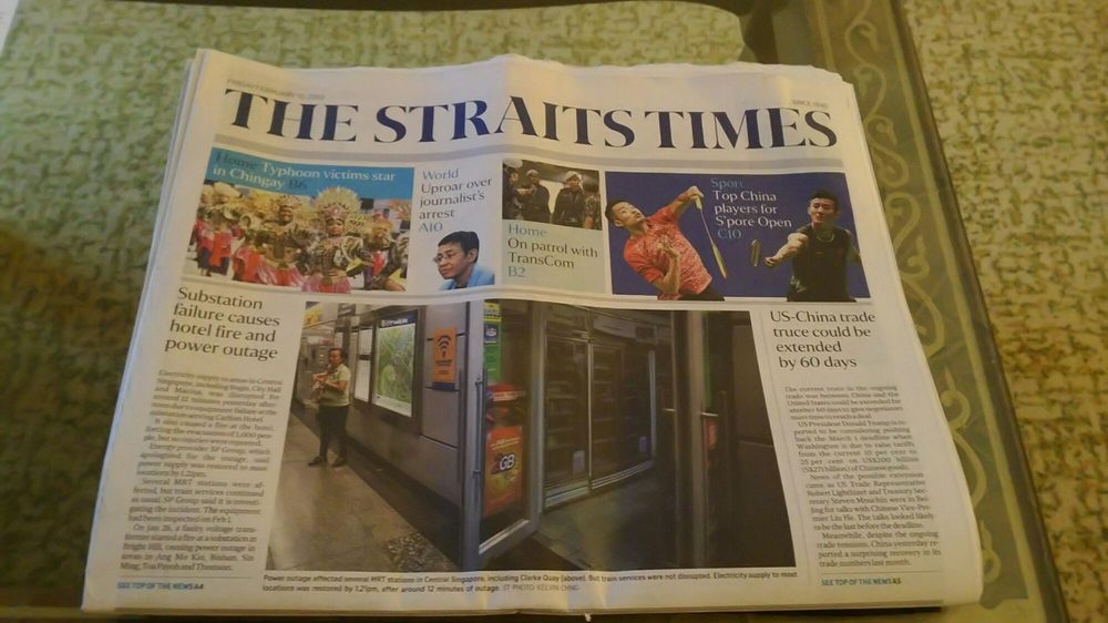 Singapore times newspaper. Top news sia group axes 2400 workers in singapore and overseas almost 9 of its workforce man jailed for chanting secret society slogan during thaipusam procession assaulting girlfriend. Breaking news top stories on courts crime housing property health transport jobs and education on cna as well as videos and features. It was founded in 1845 as a single sheet weekly by robert carr woods to provide commercial information needed by singapores bustling port community.
