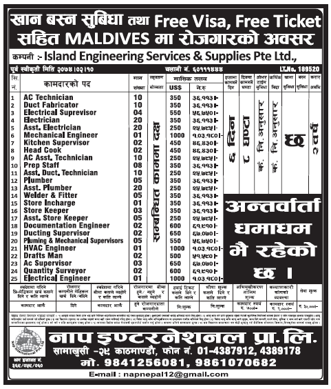 Free Visa Free Ticket Jobs In Maldives For Nepali Salary Rs 1 03 180